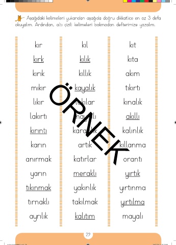 okuyalım. Ardından, altı çizili kelimeleri bakmadan defterimize yazalım.