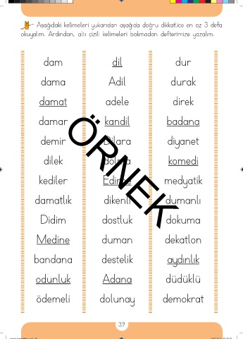 okuyalım. Ardından, altı çizili kelimeleri bakmadan defterimize yazalım.