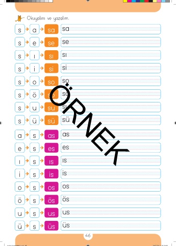 Okuyalım ve yazalım. s a sa sa s e se se s ı sı sı s i si si s o so so s ö sö sö s u su su sü s ü ÖRNEK sü a s as as e s es es ı s ıs ıs i s is is o s os os ö s ös ös u s us us ü s üs üs 46 taslak dosyabitti4.indd 46 29.07.2019 01:26:35