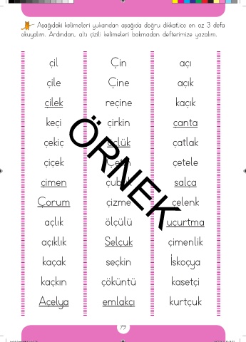 okuyalım. Ardından, altı çizili kelimeleri bakmadan defterimize yazalım.