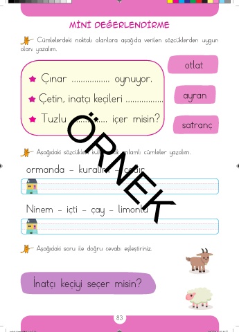 Aşağıdaki sözcükleri kullanarak anlamlı cümleler yazalım.
