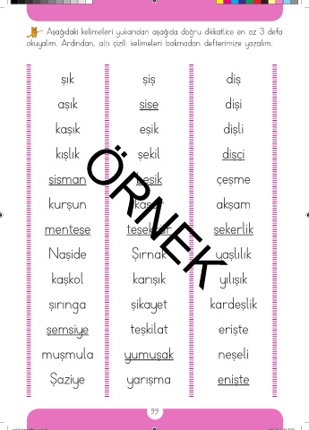 Aşağıdaki kelimeleri yukarıdan aşağıda doğru dikkatlice en az 3 defa