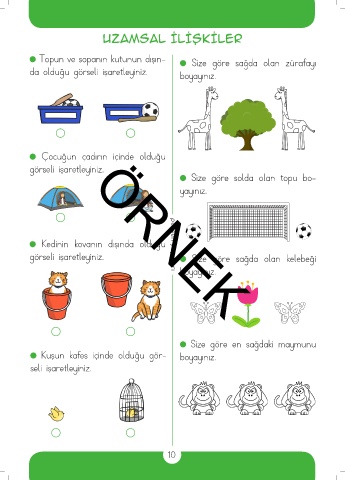 Kuşun kafes içinde olduğu gör- boyayınız.