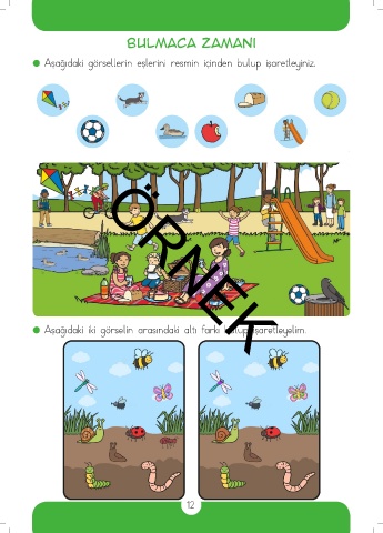 bulmaca zamanı Aşağıdaki görsellerin eşlerini resmin içinden bulup işaretleyiniz. ÖRNEK Aşağıdaki iki görselin arasındaki altı farkı bulup işaretleyelim. 12
