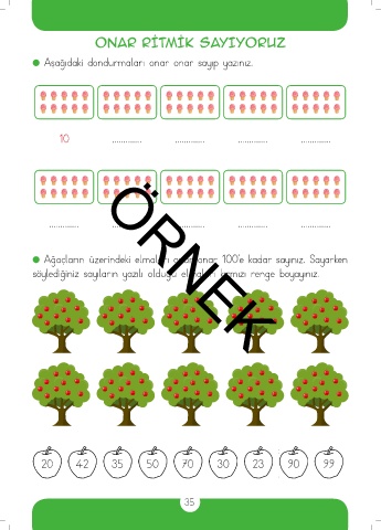 Ağaçların üzerindeki elmaları onar onar 100’e kadar sayınız. Sayarken
