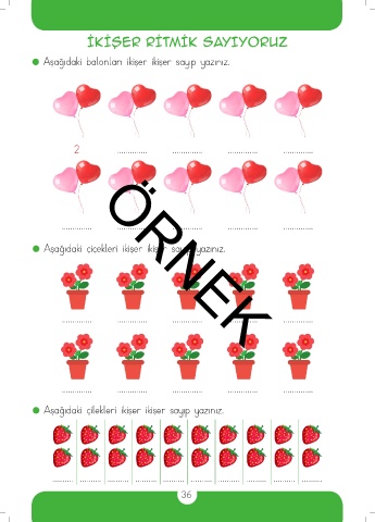 Aşağıdaki çilekleri ikişer ikişer sayıp yazınız.