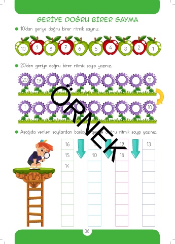 20’den geriye doğru birer ritmik sayıp yazınız.