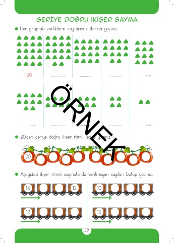 20’den geriye doğru ikişer ritmik sayıp yazınız.