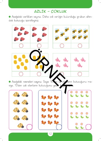Aşağıdaki nesneleri sayınız. Sayısı 10’dan az olanların kutucuğunu ma-