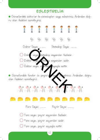 Görsellerdeki fareler ile peynirleri sayıp eşleştiriniz. Ardından doğru