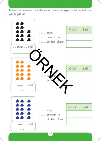 Aşağıdaki nesneleri onluklarına ve birliklerine ayırıp onluk ve birlik sa-