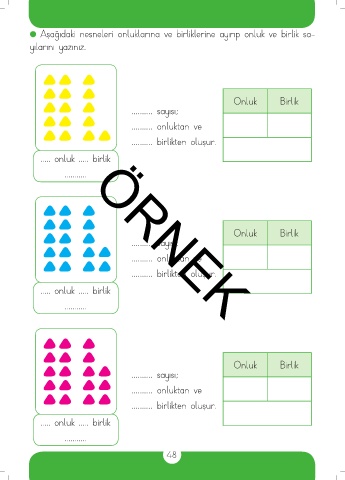 Aşağıdaki nesneleri onluklarına ve birliklerine ayırıp onluk ve birlik sa-