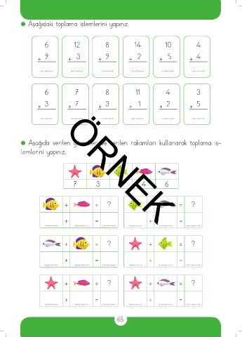 Aşağıda verilen görselleri ve verilen rakamları kullanarak toplama iş-