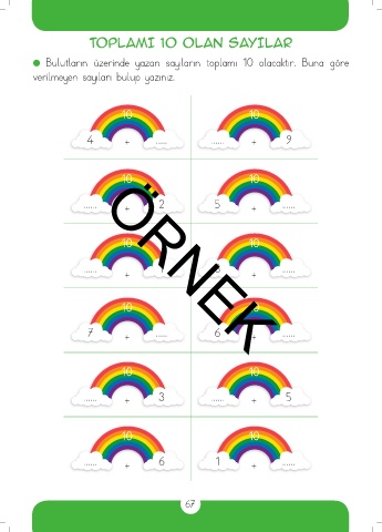 Bulutların üzerinde yazan sayıların toplamı 10 olacaktır. Buna göre