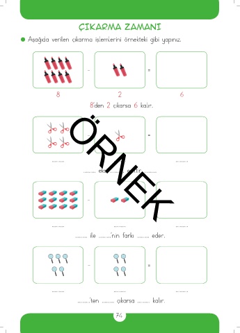 Aşağıda verilen çıkarma işlemlerini örnekteki gibi yapınız.