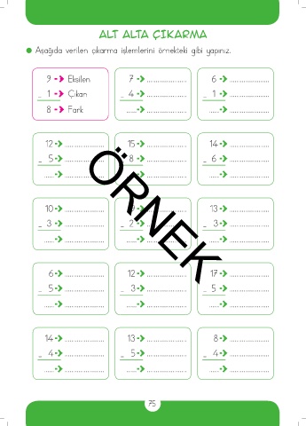 Aşağıda verilen çıkarma işlemlerini örnekteki gibi yapınız.