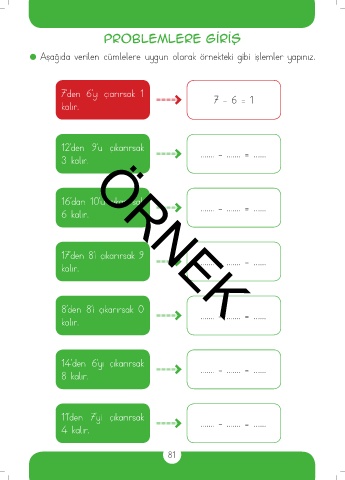 14’den 6’yı çıkarırsak ....... - ....... = .......