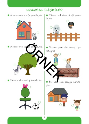 Alçakta olan varlığı işaretleyiniz. Duvara yakın olan çocuğu işa-