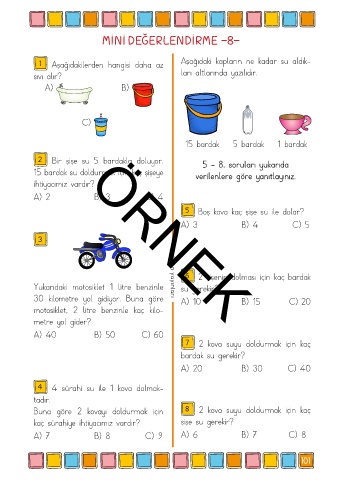 2 Bir şişe su 5 bardakla doluyor. 5 - 8. soruları yukarıda