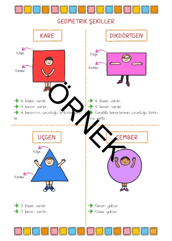 4 kenarının uzunluğu birbirine eşit- Karşılıklı kenarlarının uzunluğu birbi-