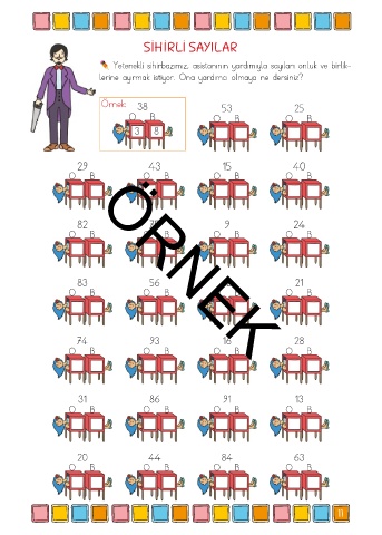 Yetenekli sihirbazımız, asistanının yardımıyla sayıları onluk ve birlik-