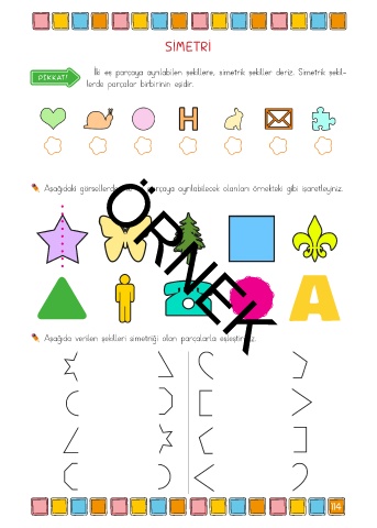 Aşağıda verilen şekilleri simetriği olan parçalarla eşleştiriniz.