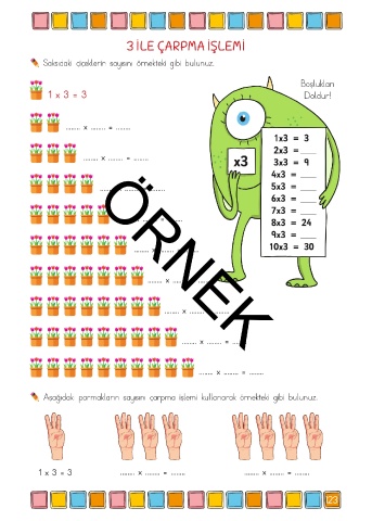 Aşağıdaki parmakların sayısını çarpma işlemi kullanarak örnekteki gibi bulunuz.