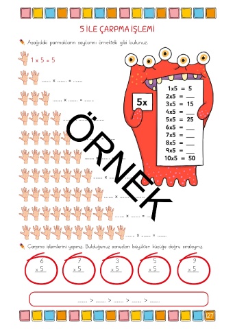 Çarpma işlemlerini yapınız. Bulduğunuz sonuçları büyükten küçüğe doğru sıralayınız.