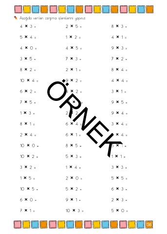 Aşağıda verilen çarpma işlemlerini yapınız.