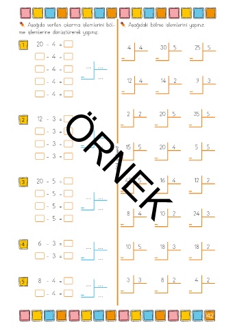 Aşağıda verilen çıkarma işlemlerini böl- Aşağıdaki bölme işlemlerini yapınız.