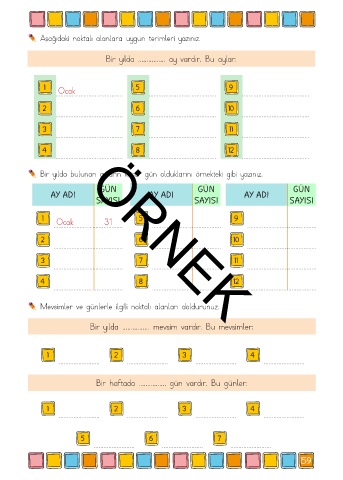 Mevsimler ve günlerle ilgili noktalı alanları doldurunuz.
