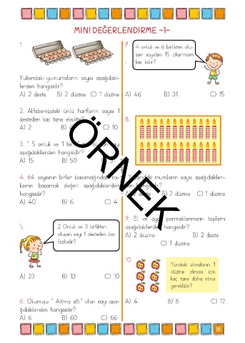 6. Okunuşu “ Altmış altı” olan sayı aşa- A) 4 B) 6 C) 12