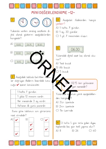 Yukarıda verilen analog saatlerin di- B) 1 ay, 30 gündür.