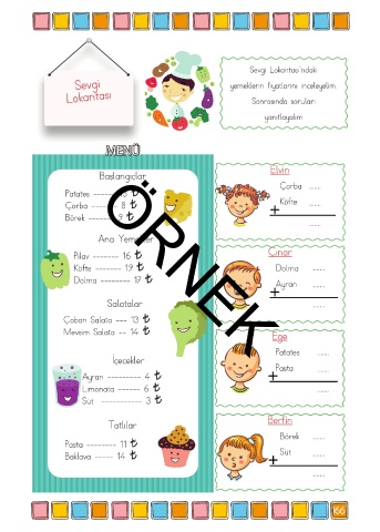 Sevgi yemeklerin fiyatlarını inceleyelim.