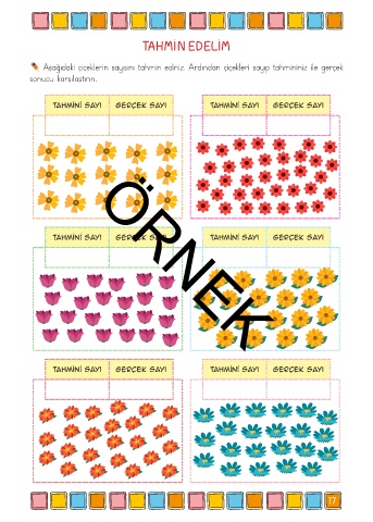 Aşağıdaki çiçeklerin sayısını tahmin ediniz. Ardından çiçekleri sayıp tahmininiz ile gerçek