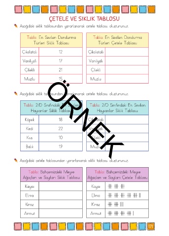 Aşağıdaki çetele tablosundan yararlanarak sıklık tablosu oluşturunuz.