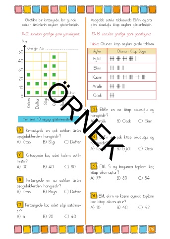 satılan ürünlerin sayıları gösterilmiştir. göre okuduğu kitap sayıları gösterilmiştir.
