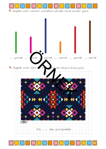 Aşağıdaki verilen çubukların uzunluklarını parmakla ölçerek sonuçları yazınız.