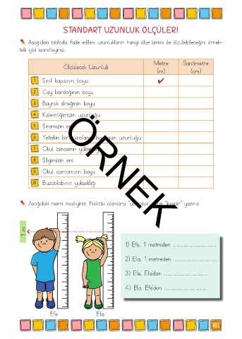 Aşağıdaki tabloda ifade edilen uzunlukların hangi ölçe birimi ile ölçülebileceğini örnek-