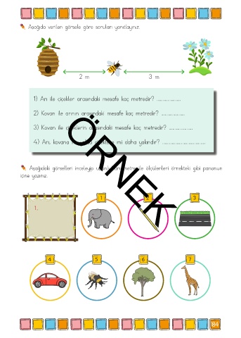 1) Arı ile çiçekler arasındaki mesafe kaç metredir? ....................
