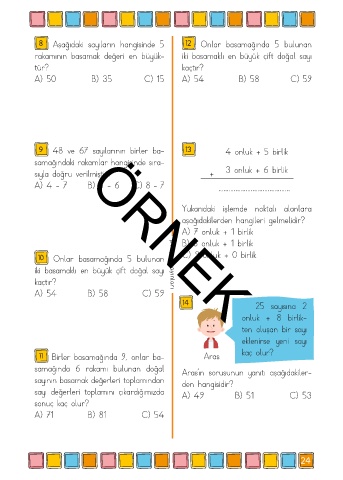 9 48 ve 67 sayılarının birler ba- 13 4 onluk + 5 birlik