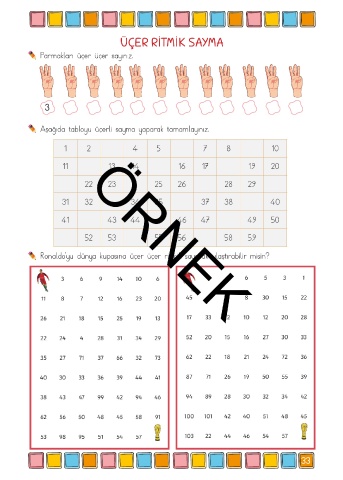 Aşağıda tabloyu üçerli sayma yaparak tamamlayınız.