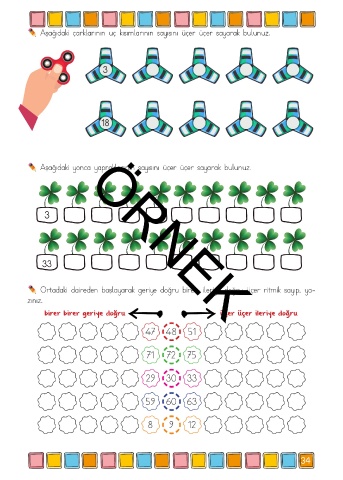 Ortadaki daireden başlayarak geriye doğru birer, ileriye doğru üçer ritmik sayıp, ya-