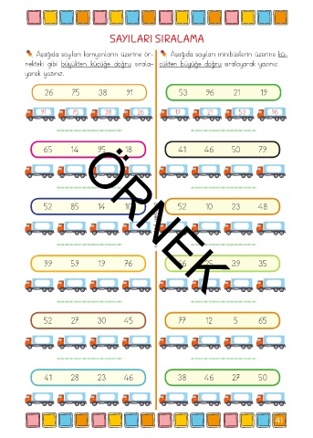 Aşağıda sayıları kamyonların üzerine ör- Aşağıda sayıları minibüslerin üzerine kü-