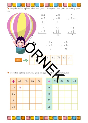 Aşağıdaki toplama işlemlerini yapıp tabloyu örnekteki gibi tamamlayınız.