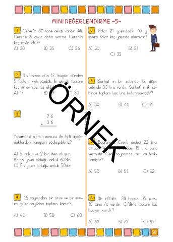 1 Ceren’in 30 tane cevizi vardır. Ali, 5 Polat 21 yaşındadır. 10 yıl