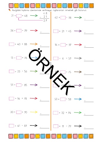 Aşağıdaki toplama işlemlerinde verilmeyen toplananları örnekteki gibi bulunuz.