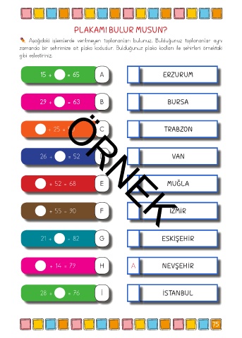 zamanda bir şehrimize ait plaka kodudur. Bulduğunuz plaka kodları ile şehirleri örnektaki