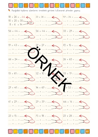 Aşağıdaki toplama işlemlerini örnekteki yöntemi kullanarak zihinden yapınız.