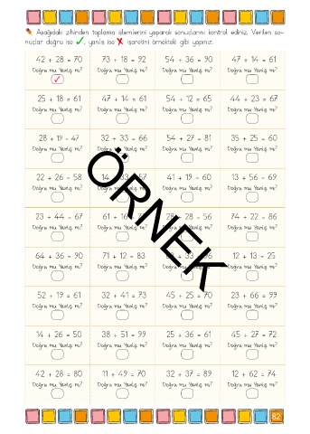 Aşağıdaki zihinden toplama işlemlerini yaparak sonuçlarını kontrol ediniz. Verilen so-